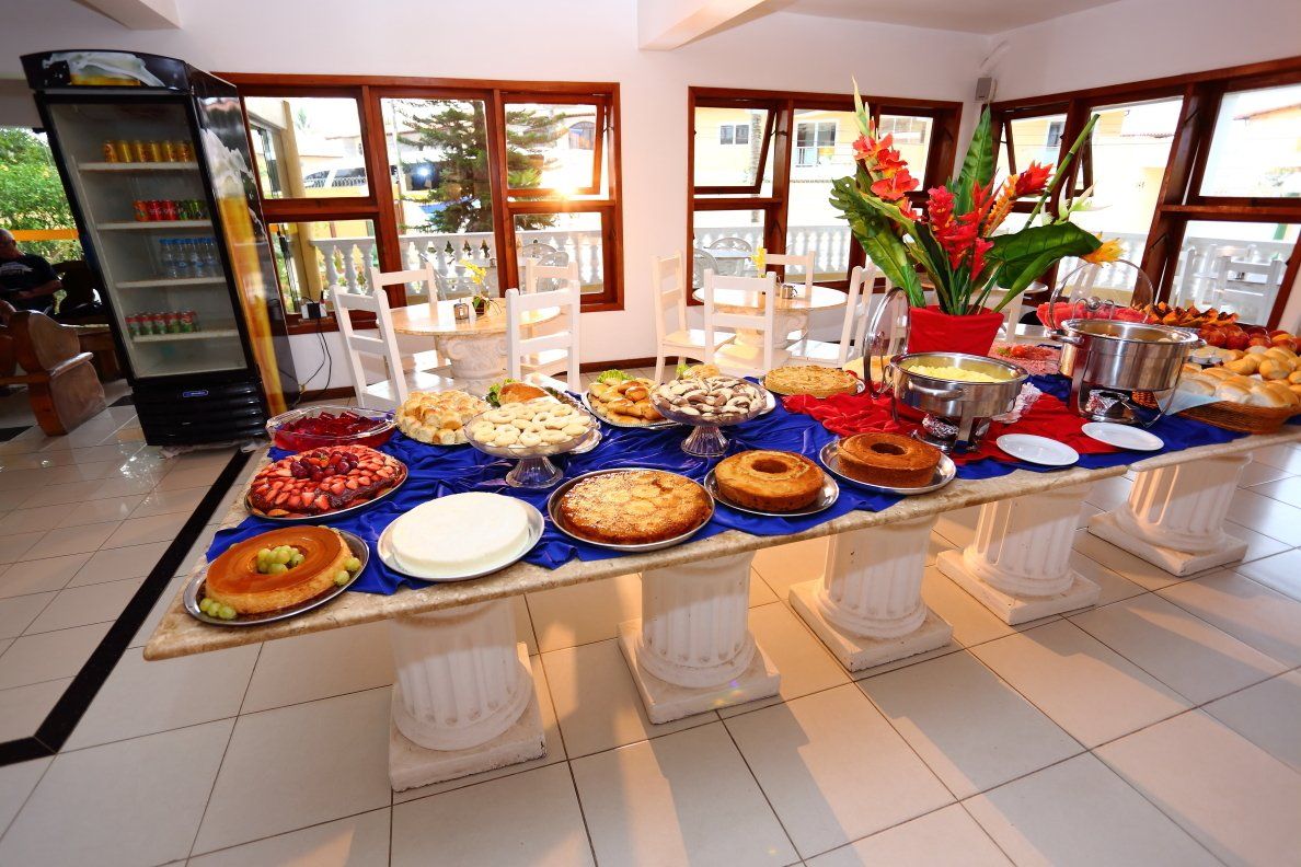 Nosso Restaurante serve diariamente café da manhã buffet preparado no próprio hotel com variedades de pães, bolos, salgados, frutas, frios e sucos.
